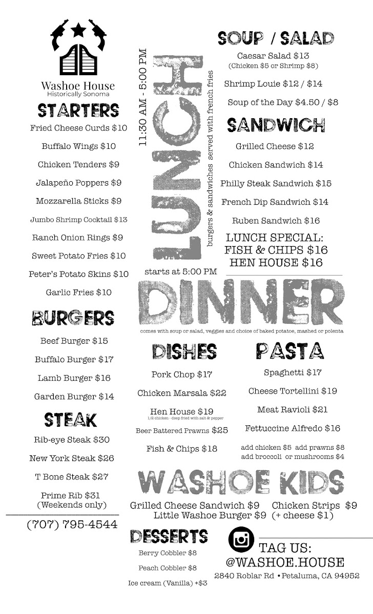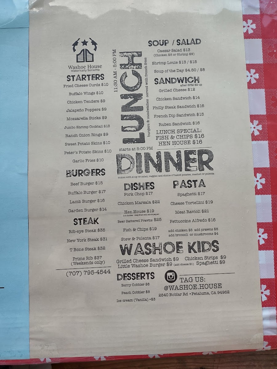 The menu at Washoe House offers a straightforward and approachable selection that fits perfectly with its relaxed bar and grill atmosphere. Expect classic American dishes that feel like comfortable, familiar favorites you can enjoy any time of day—from a hearty breakfast to a casual dinner with friends.